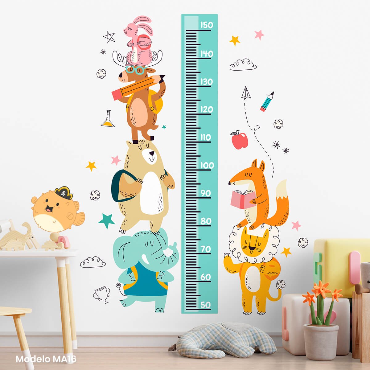 El vinil es autoadhesivo e impreso con tintas ecológicas, no tóxicas. Las medidas ancho x alto son aproximadas.