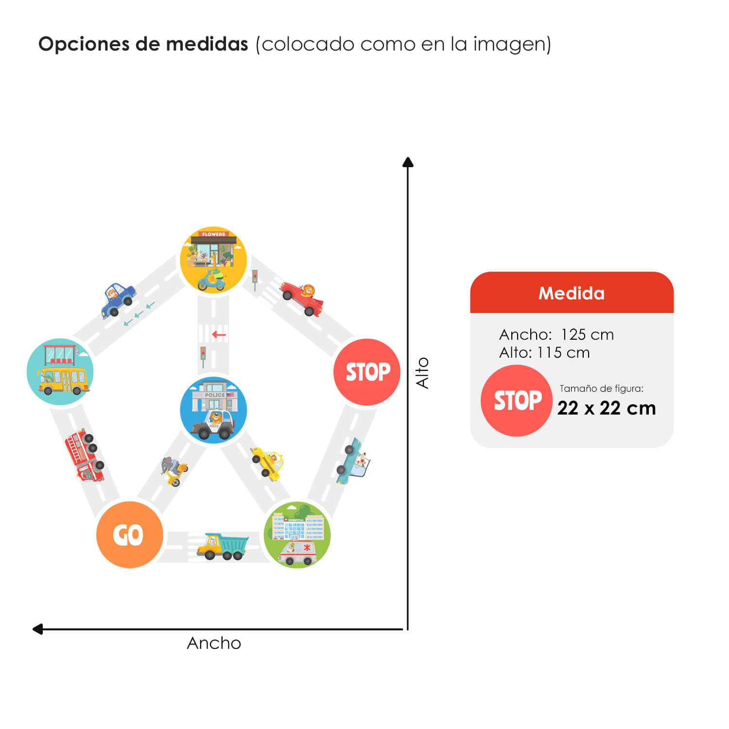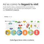 El vinil es autoadhesivo e impreso con tintas ecológicas, no tóxicas. Las medidas ancho x alto son aproximadas.