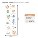 El vinil es autoadhesivo e impreso con tintas ecológicas, no tóxicas. Las medidas ancho x alto son aproximadas.