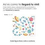 El vinil es autoadhesivo e impreso con tintas ecológicas, no tóxicas. Las medidas ancho x alto son aproximadas.