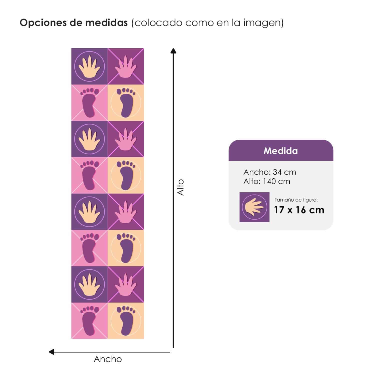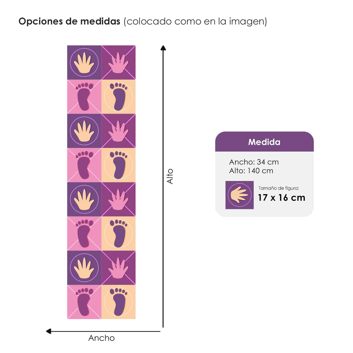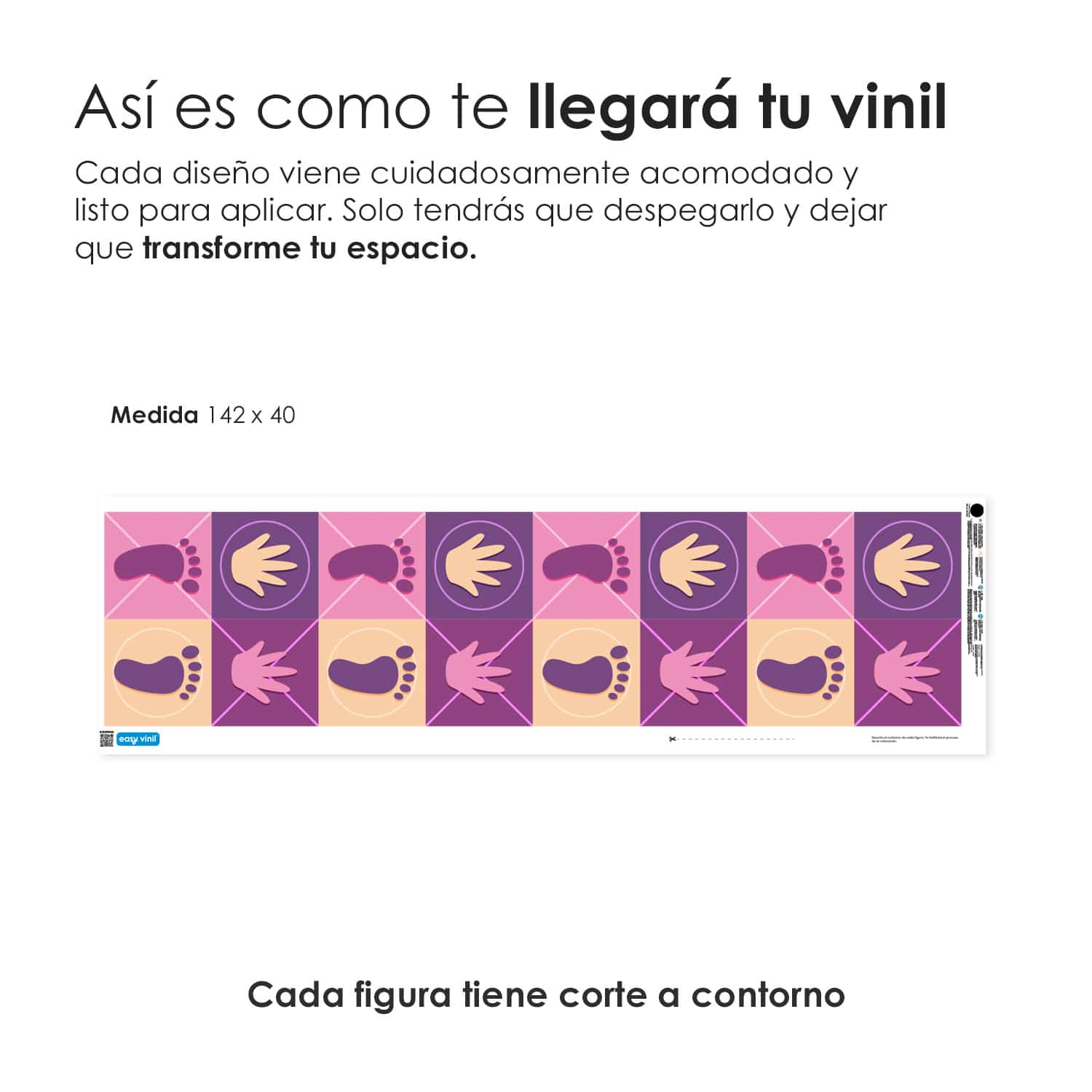 El vinil es autoadhesivo e impreso con tintas ecológicas, no tóxicas. Las medidas ancho x alto son aproximadas.