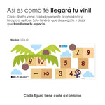El vinil es autoadhesivo e impreso con tintas ecológicas, no tóxicas. Las medidas ancho x alto son aproximadas.