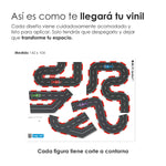 El vinil es autoadhesivo e impreso con tintas ecológicas, no tóxicas. Las medidas ancho x alto son aproximadas.