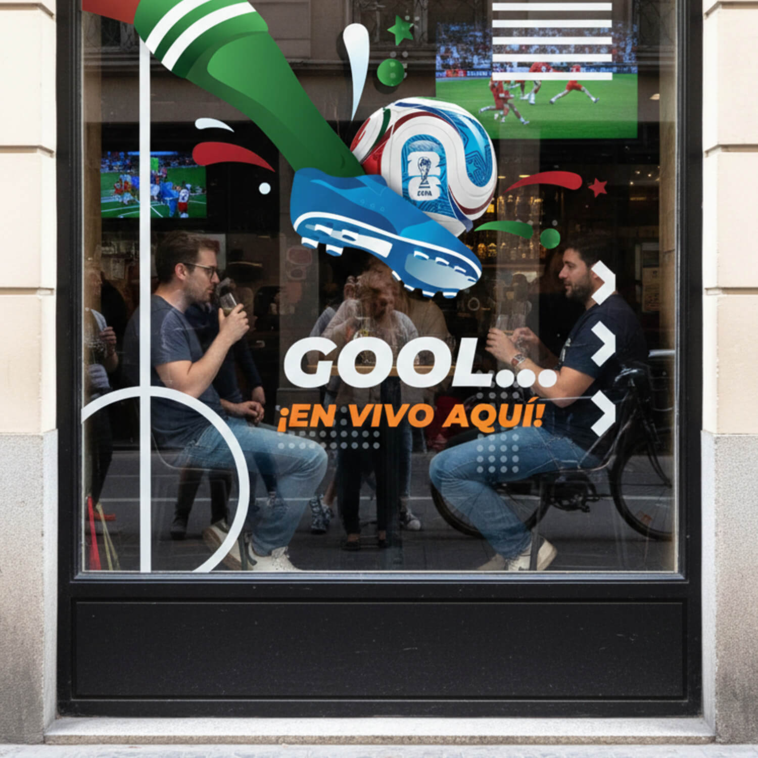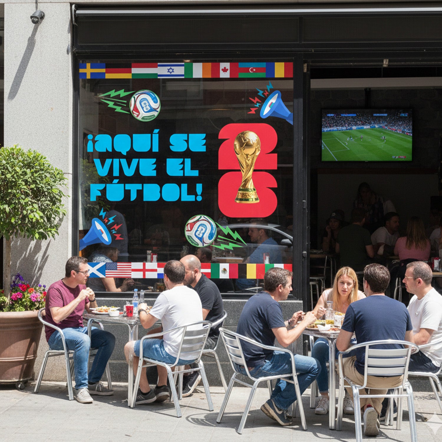 ⚽ Decora tus ventanas con viniles electrostáticos mundialistas, ideales para negocios.