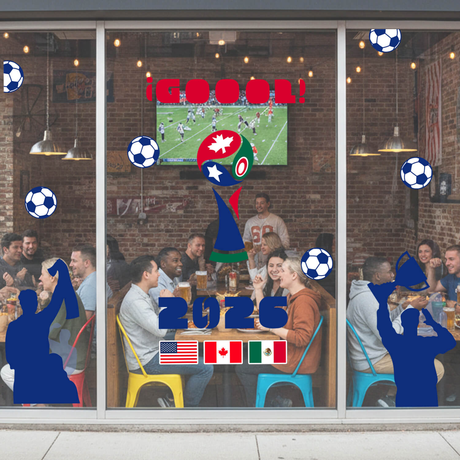 ⚽ Decora tus ventanas con viniles electrostáticos mundialistas, ideales para negocios.