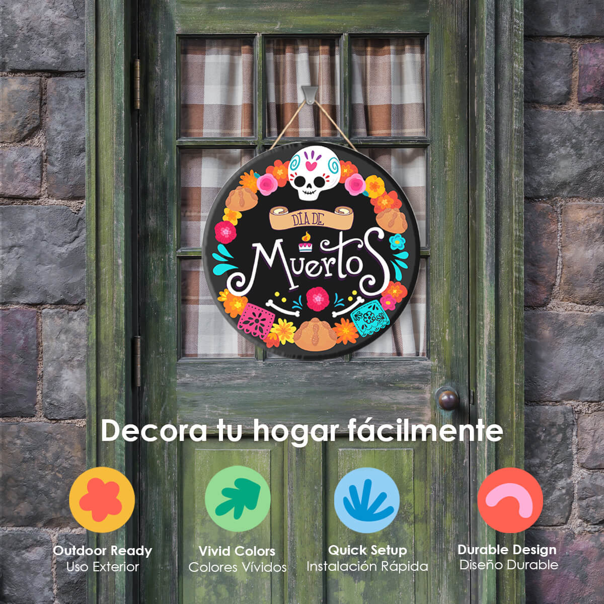 -Diseños únicos: Inspirados en Halloween y Día de Muertos, perfectos para decorar puertas, habitaciones o cualquier rincón de tu hogar.