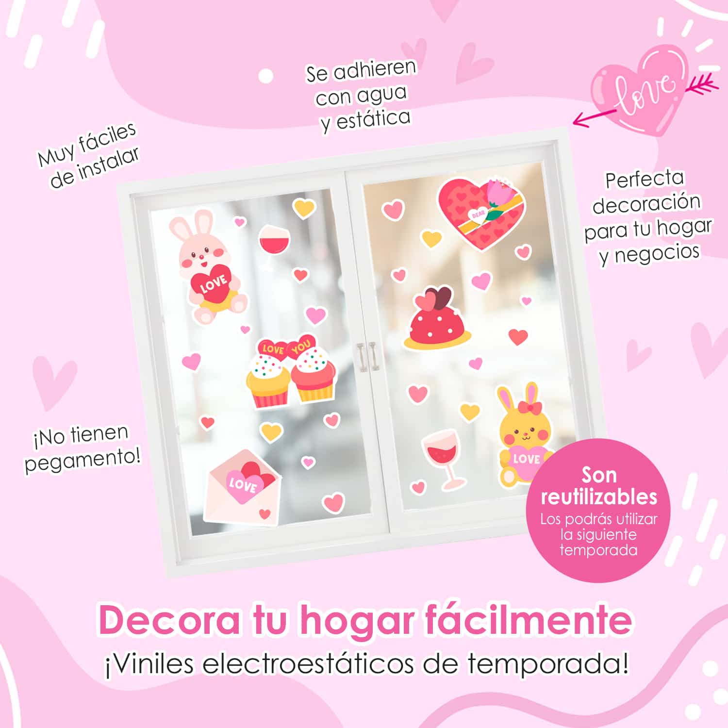 ❤️¡Dale un toque especial y romántico a tus ventanas con nuestros vinilos electrostáticos de temporada!