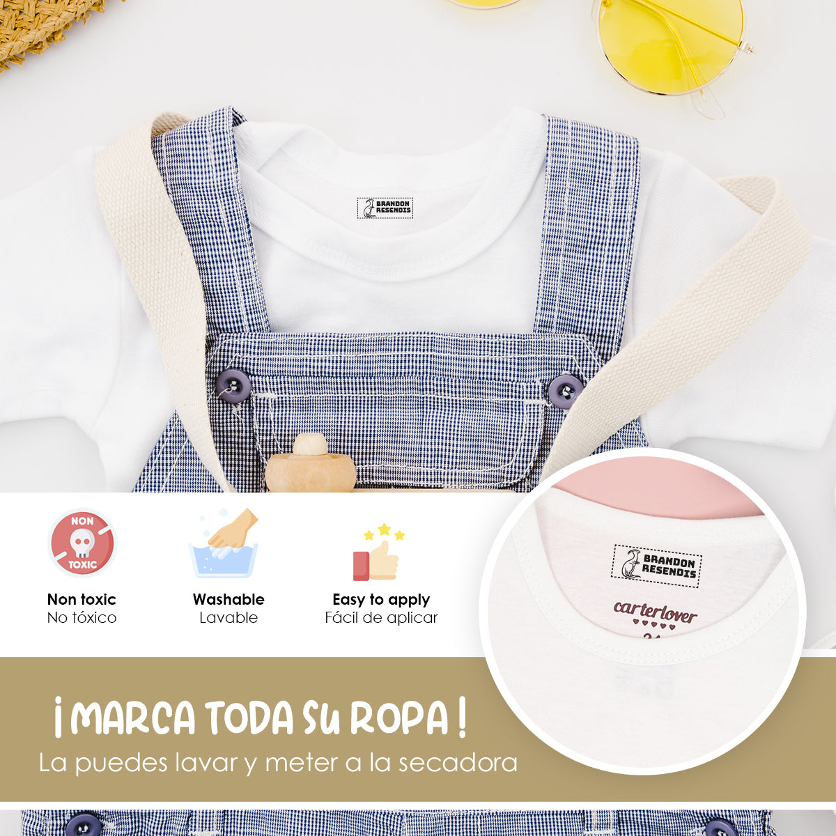Nuestros sellos están diseñados para ser duraderos y resistentes al lavado, garantizando que las etiquetas de la ropa de tus hijos permanezcan legibles y claras durante mucho tiempo.