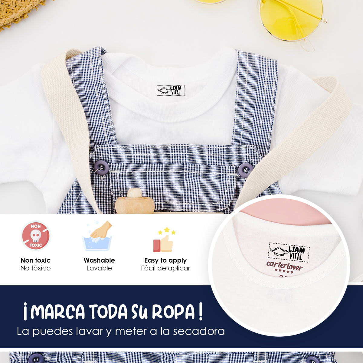 Práctico y duraderoNuestros sellos están diseñados para ser duraderos y resistentes al lavado, garantizando que las etiquetas de la ropa de tus hijos permanezcan legibles y claras durante mucho tiempo.