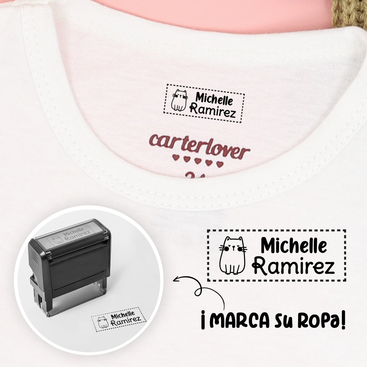 Nuestro sello textil es perfecto y práctico. Solo escribe el nombre que deseas y tendrás la herramienta perfecta en tus manos.