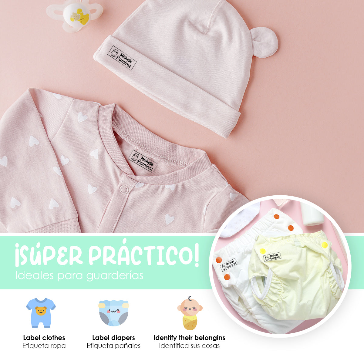 Práctico y duraderoNuestros sellos están diseñados para ser duraderos y resistentes al lavado, garantizando que las etiquetas de la ropa de tus hijos permanezcan legibles y claras durante mucho tiempo.