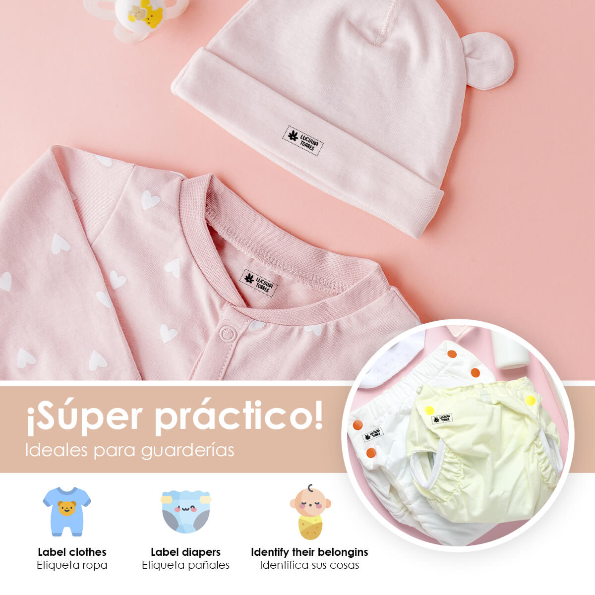 Práctico y duraderoNuestros sellos están diseñados para ser duraderos y resistentes al lavado, garantizando que las etiquetas de la ropa de tus hijos permanezcan legibles y claras durante mucho tiempo.