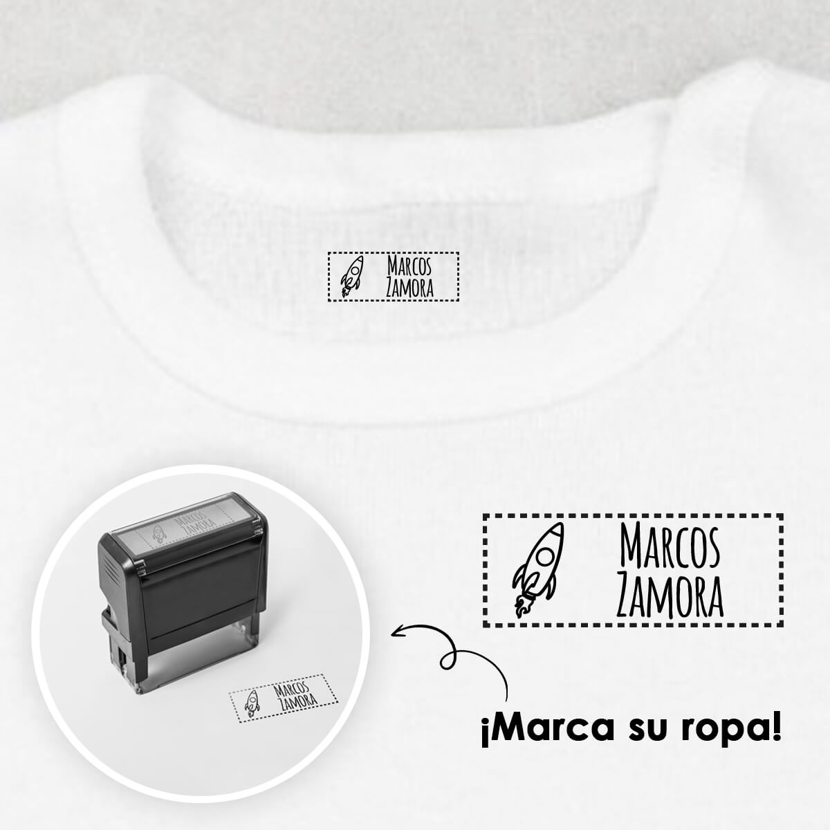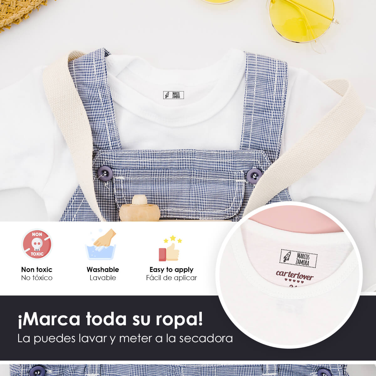 Nuestro sello textil es ideal para marcar su ropa en poco tiempo. Es sumamente práctico y lograras marcar la vestimenta de los niños, pañales, papeles, libros, etc.
