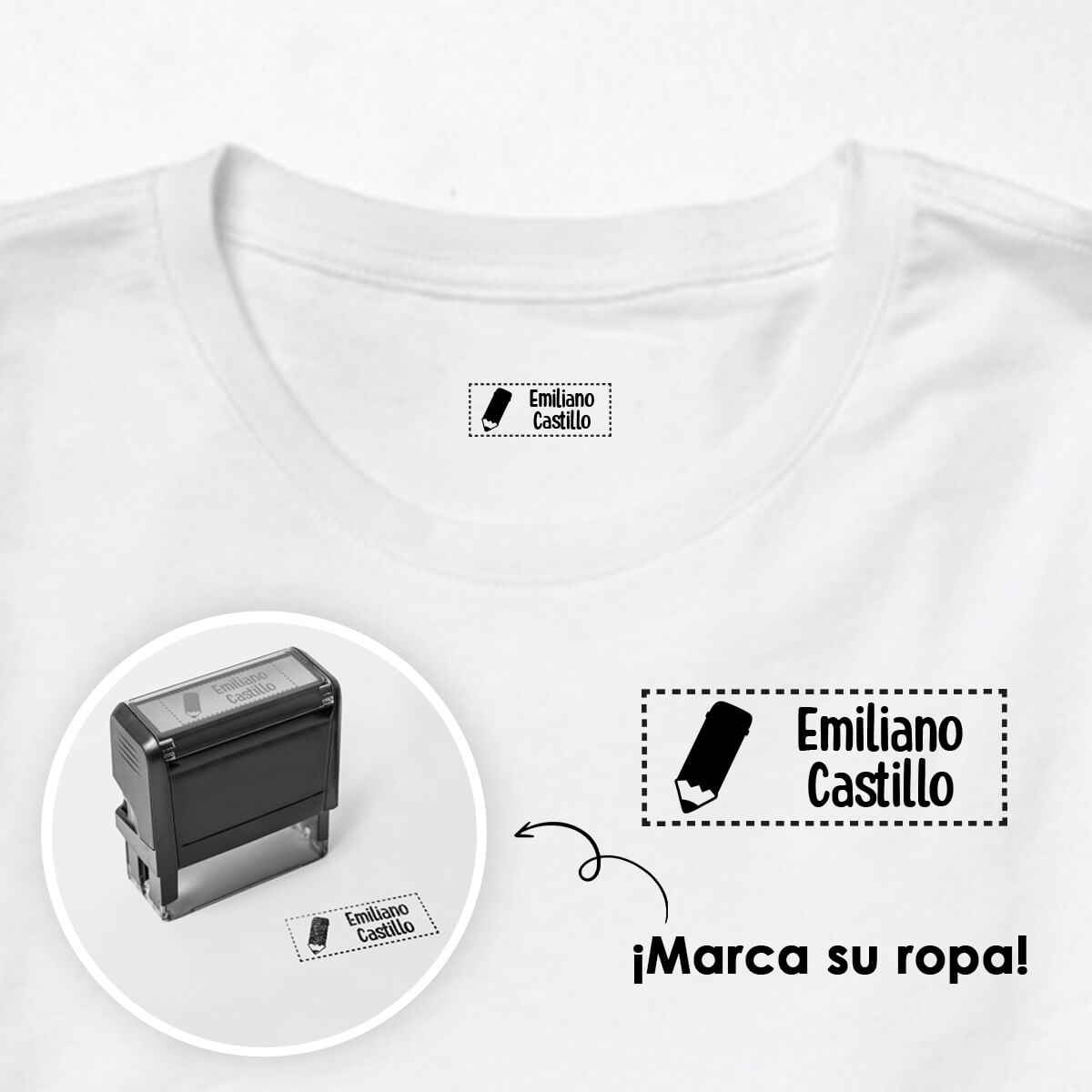 Nuestro sello textil es perfecto y práctico. Solo escribe el nombre que deseas y tendrás la herramienta perfecta en tus manos.