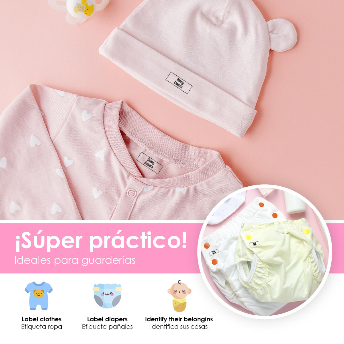 Práctico y duraderoNuestros sellos están diseñados para ser duraderos y resistentes al lavado, garantizando que las etiquetas de la ropa de tus hijos permanezcan legibles y claras durante mucho tiempo.
