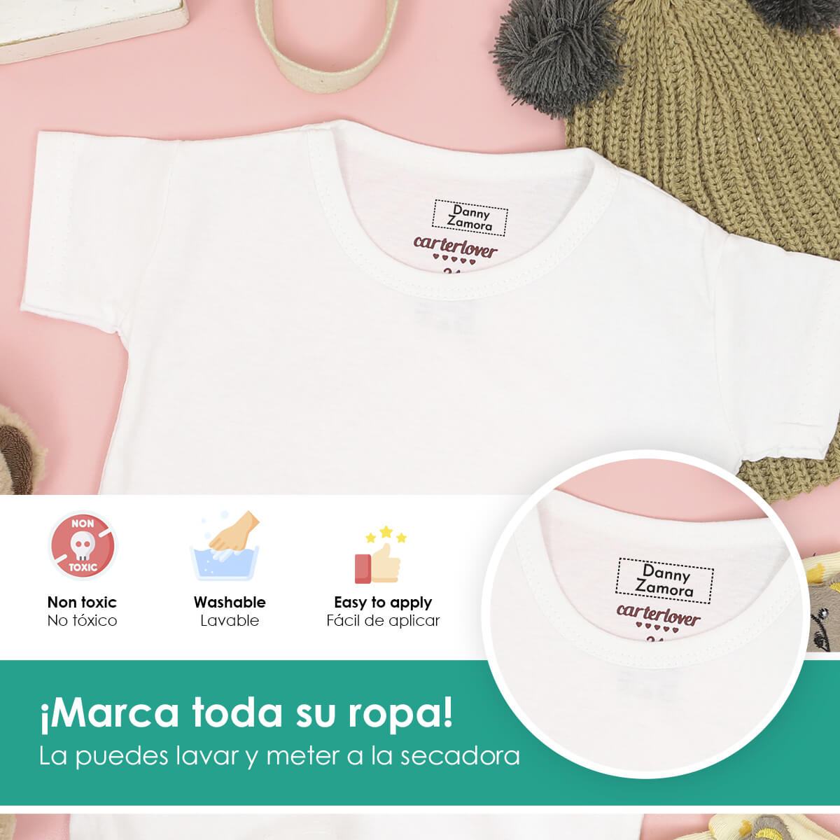 Práctico y duraderoNuestros sellos están diseñados para ser duraderos y resistentes al lavado, garantizando que las etiquetas de la ropa de tus hijos permanezcan legibles y claras durante mucho tiempo.