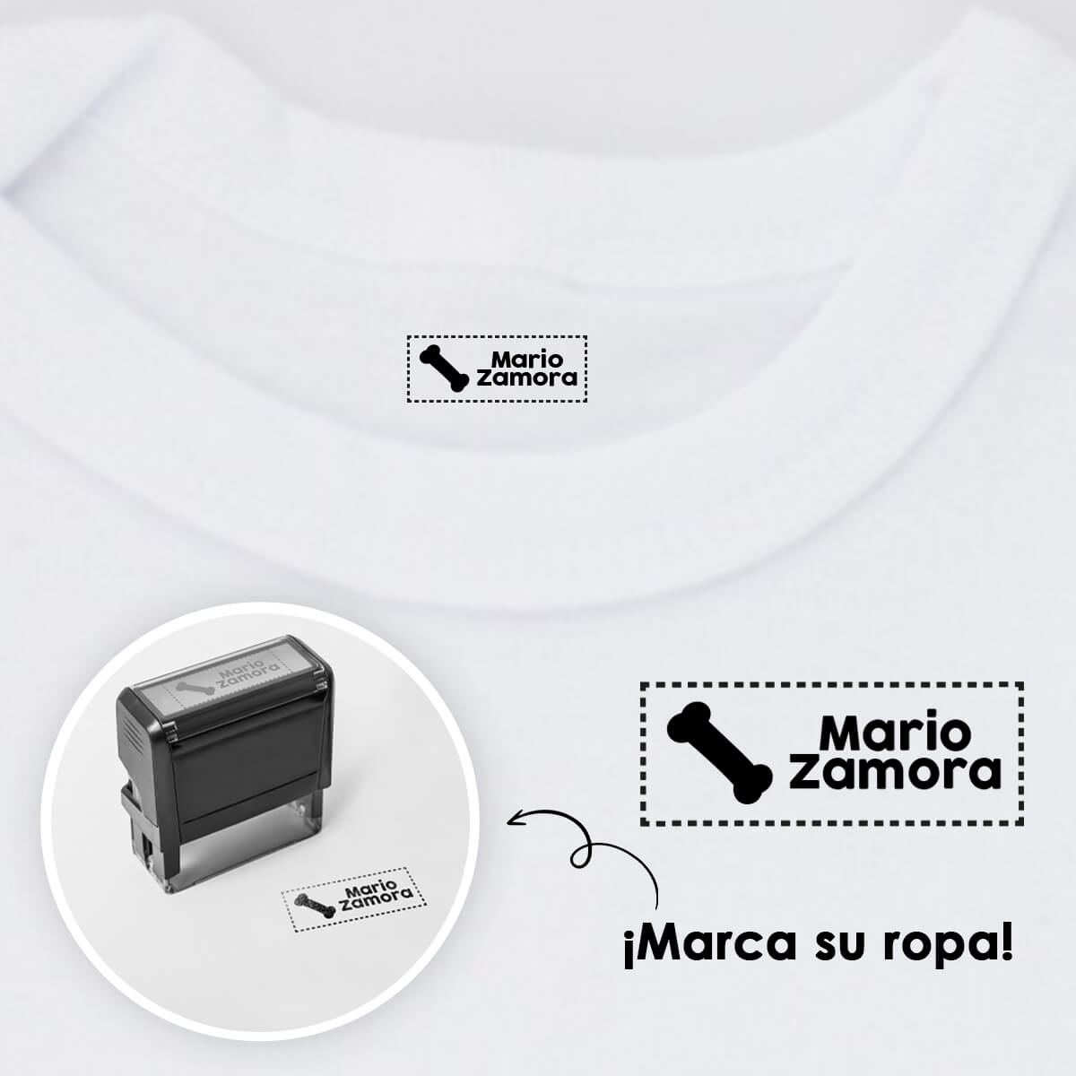 Nuestro sello textil es perfecto y práctico. Solo escribe el nombre que deseas y tendrás la herramienta perfecta en tus manos.