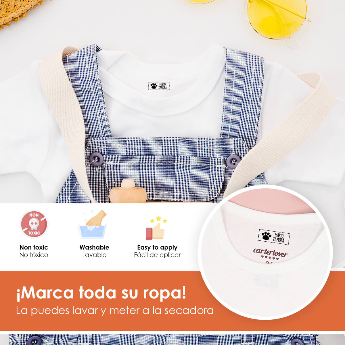 Práctico y duraderoNuestros sellos están diseñados para ser duraderos y resistentes al lavado, garantizando que las etiquetas de la ropa de tus hijos permanezcan legibles y claras durante mucho tiempo.