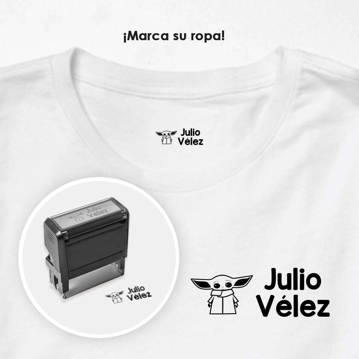 Nuestro sello textil es ideal para marcar su ropa en poco tiempo. Es sumamente práctico y lograras marcar la vestimenta de los niños, pañales, papeles, libros, etc.