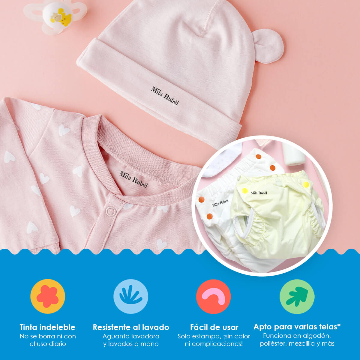 Práctico y duraderoNuestros sellos están diseñados para ser duraderos y resistentes al lavado, garantizando que las etiquetas de la ropa de tus hijos permanezcan legibles y claras durante mucho tiempo.