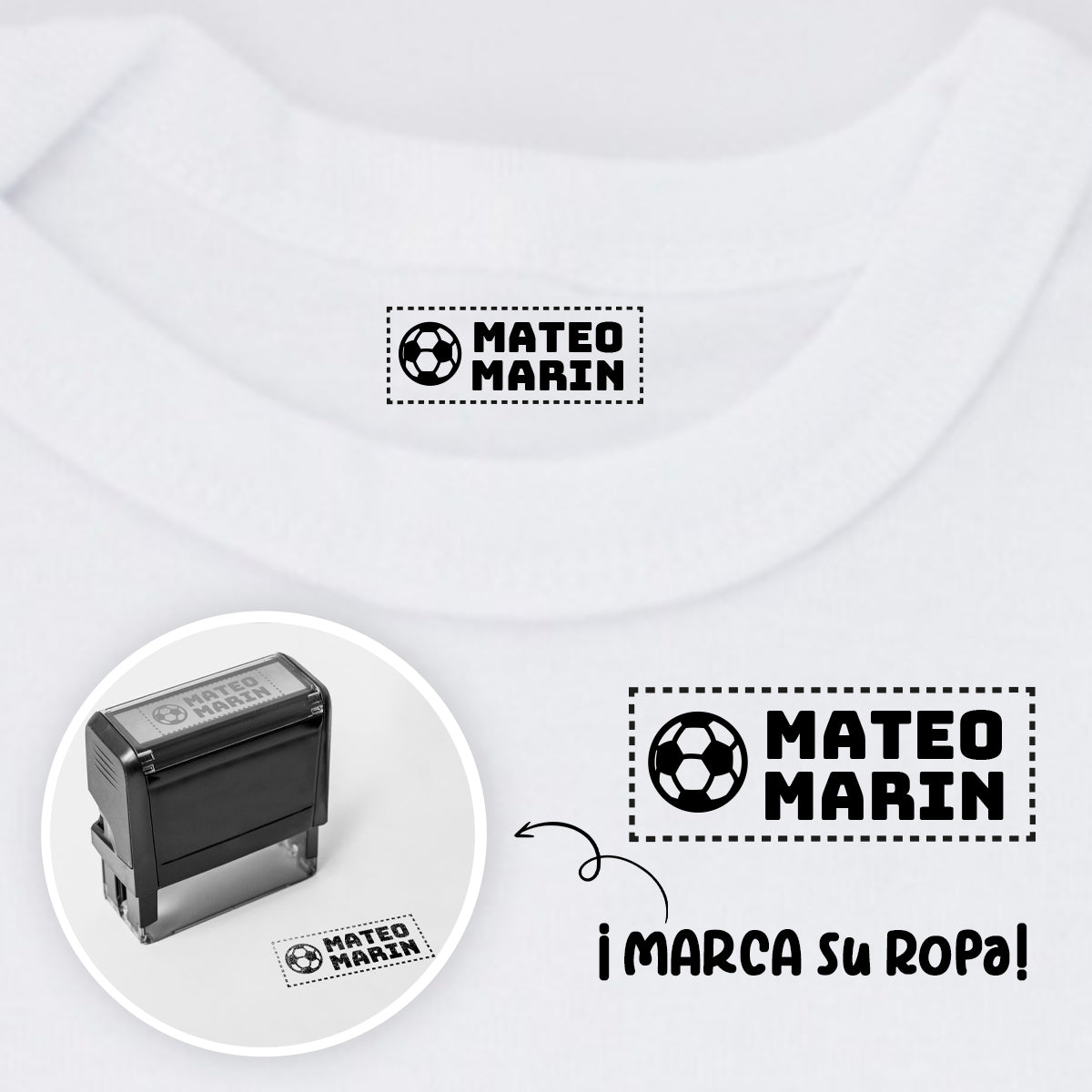 Nuestro sello textil es perfecto y práctico. Solo escribe el nombre que deseas y tendrás la herramienta perfecta en tus manos.