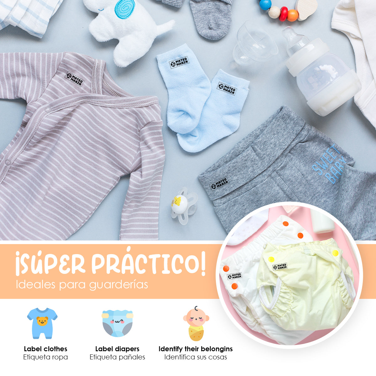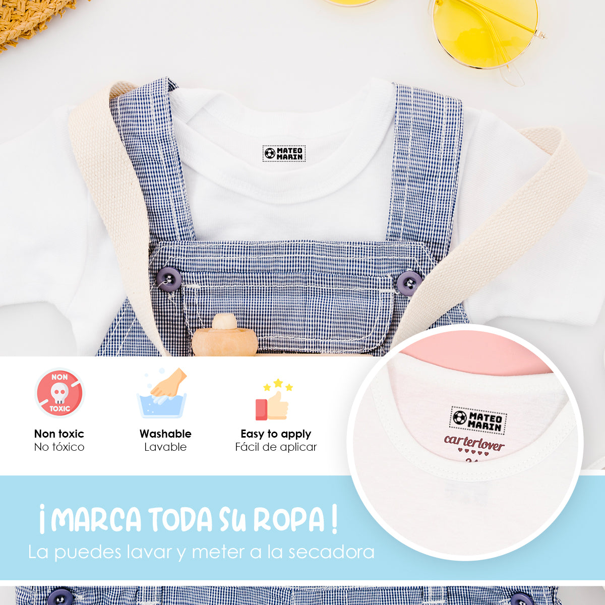 Práctico y duraderoNuestros sellos están diseñados para ser duraderos y resistentes al lavado, garantizando que las etiquetas de la ropa de tus hijos permanezcan legibles y claras durante mucho tiempo.