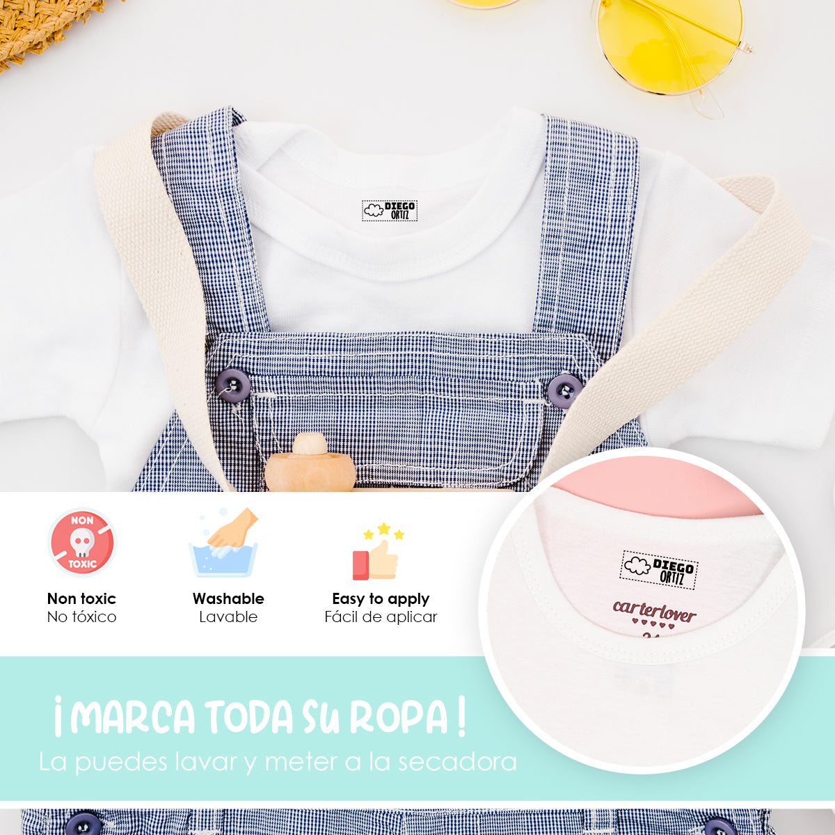 Práctico y duraderoNuestros sellos están diseñados para ser duraderos y resistentes al lavado, garantizando que las etiquetas de la ropa de tus hijos permanezcan legibles y claras durante mucho tiempo.