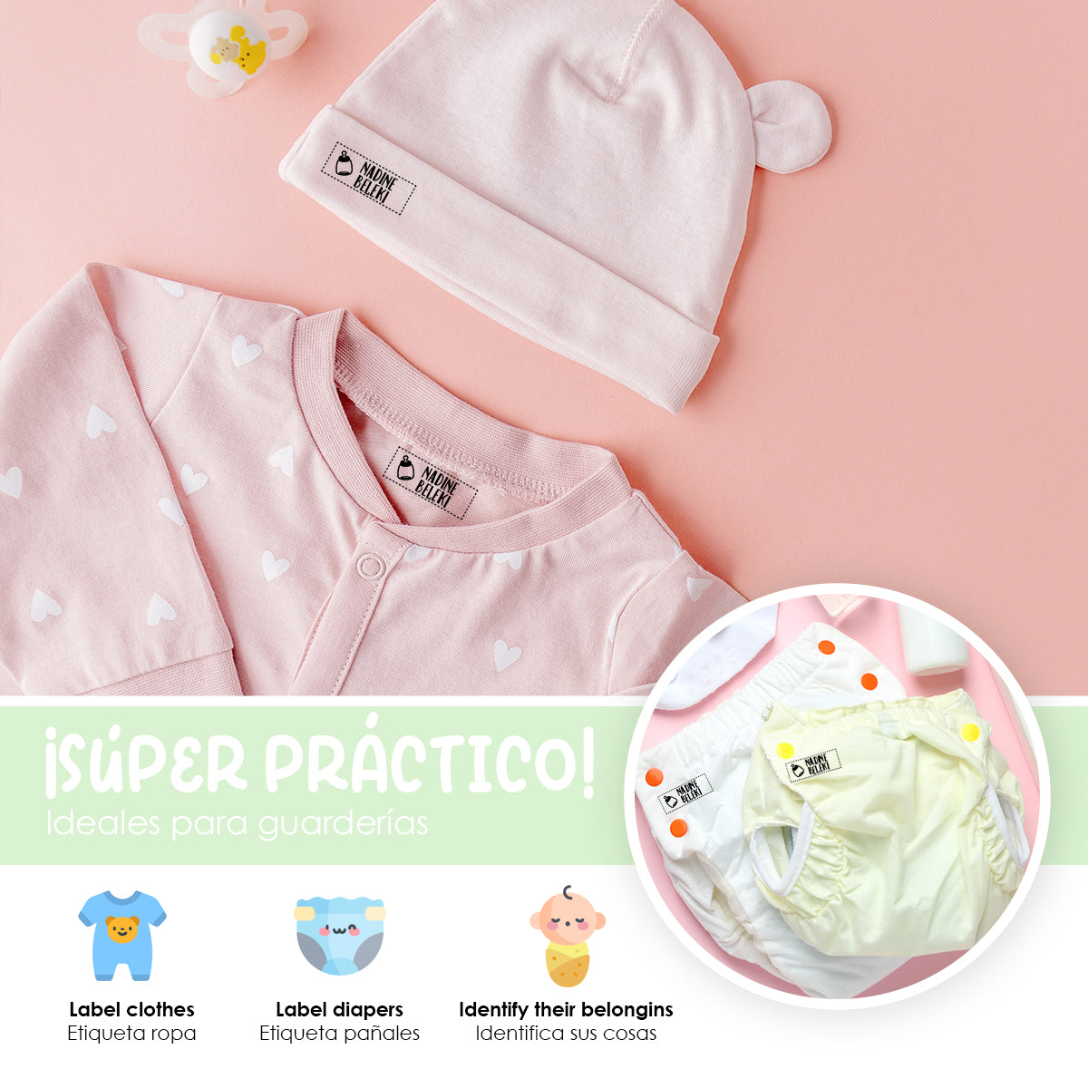 Nuestros sellos están diseñados para ser duraderos y resistentes al lavado, garantizando que las etiquetas de la ropa de tus hijos permanezcan legibles y claras durante mucho tiempo.