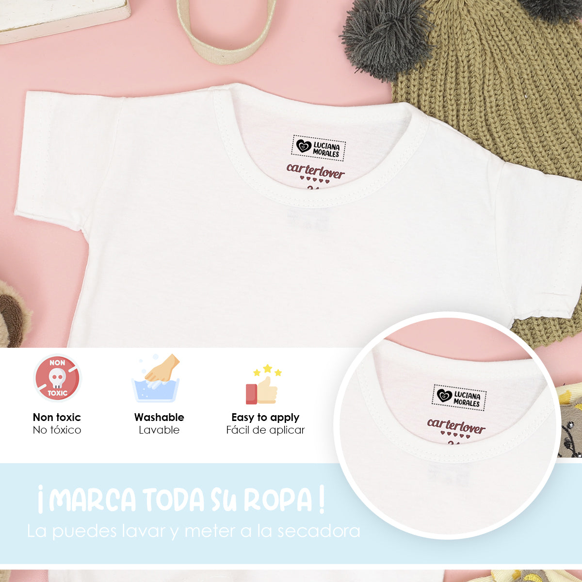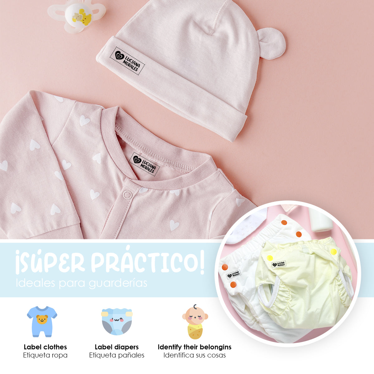 Práctico y duraderoNuestros sellos están diseñados para ser duraderos y resistentes al lavado, garantizando que las etiquetas de la ropa de tus hijos permanezcan legibles y claras durante mucho tiempo.