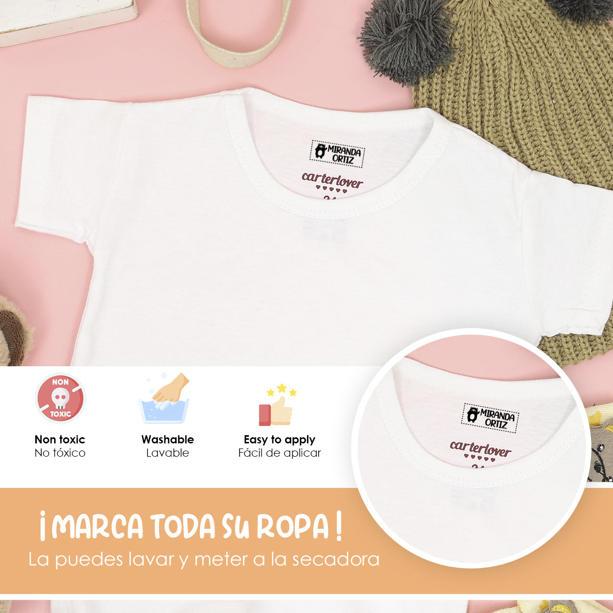 Práctico y duraderoNuestros sellos están diseñados para ser duraderos y resistentes al lavado, garantizando que las etiquetas de la ropa de tus hijos permanezcan legibles y claras durante mucho tiempo.