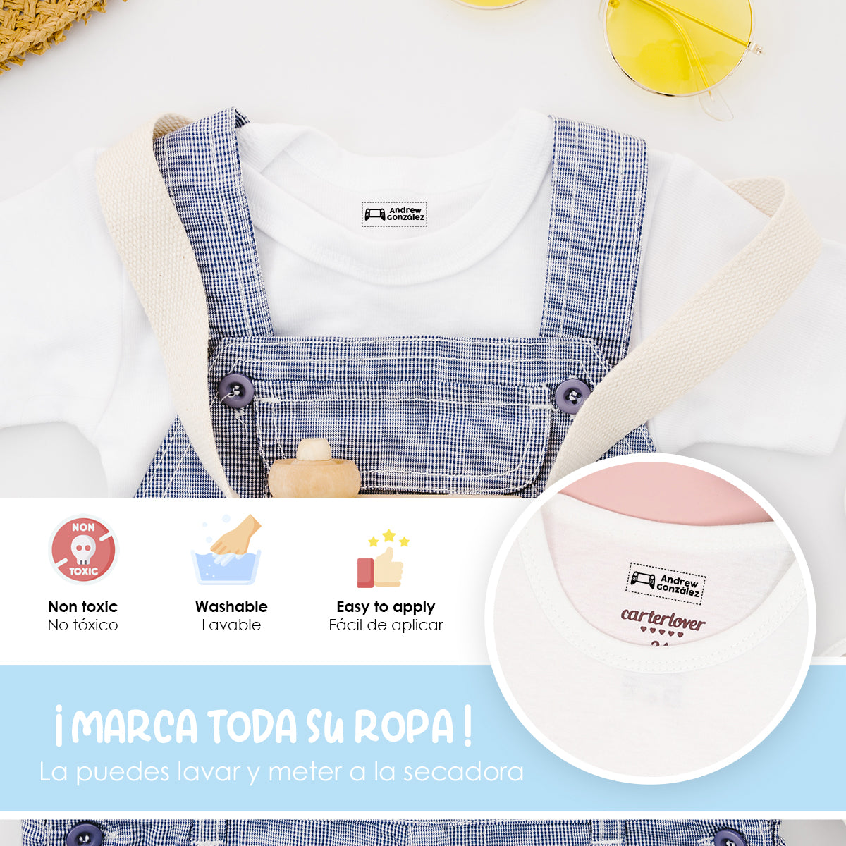 Práctico y duraderoNuestros sellos están diseñados para ser duraderos y resistentes al lavado, garantizando que las etiquetas de la ropa de tus hijos permanezcan legibles y claras durante mucho tiempo.