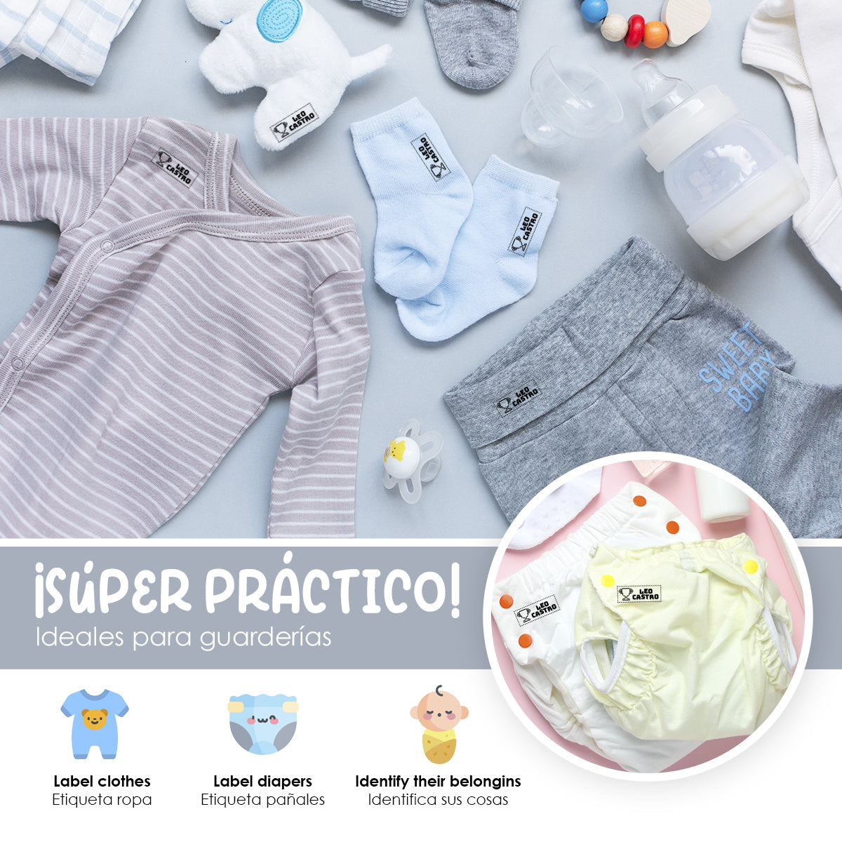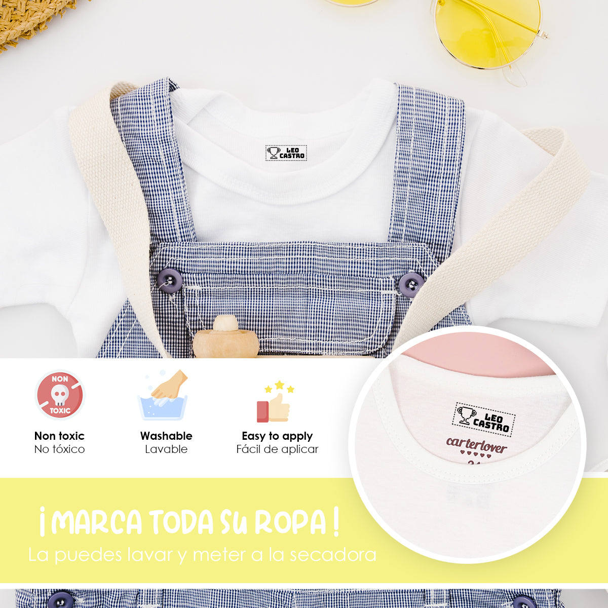 Práctico y duraderoNuestros sellos están diseñados para ser duraderos y resistentes al lavado, garantizando que las etiquetas de la ropa de tus hijos permanezcan legibles y claras durante mucho tiempo.