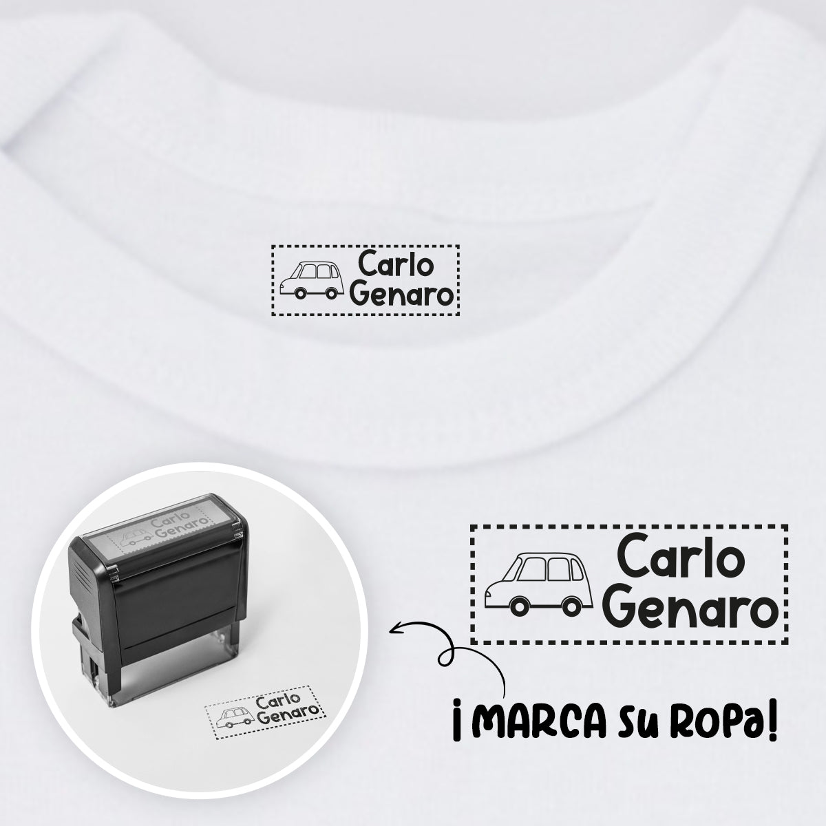 Nuestro sello textil es perfecto y práctico. Solo escribe el nombre que deseas y tendrás la herramienta perfecta en tus manos.