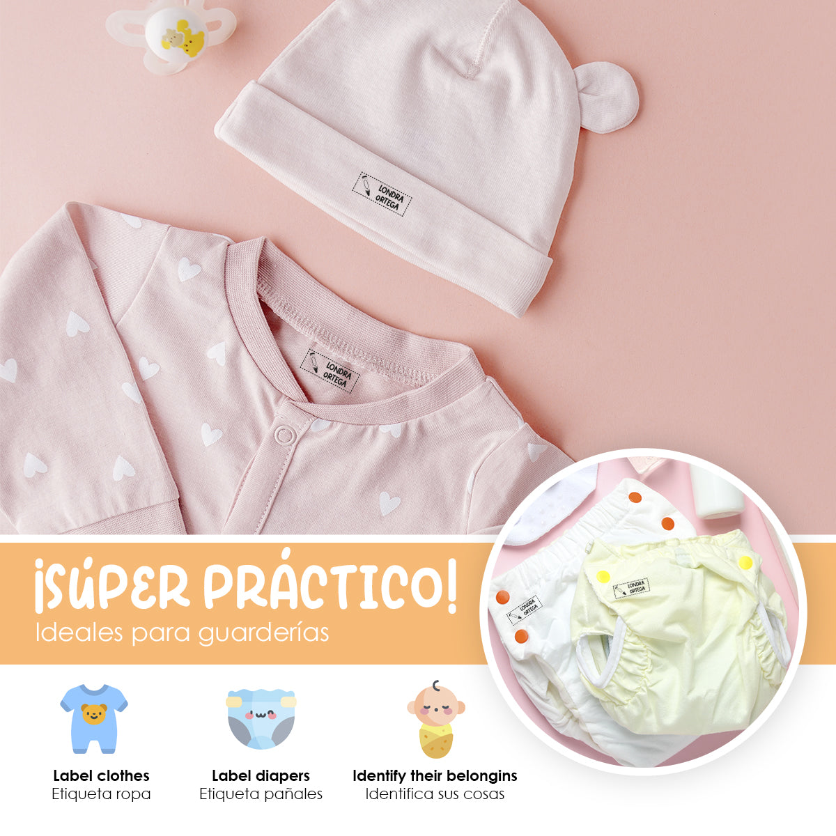 Práctico y duraderoNuestros sellos están diseñados para ser duraderos y resistentes al lavado, garantizando que las etiquetas de la ropa de tus hijos permanezcan legibles y claras durante mucho tiempo.
