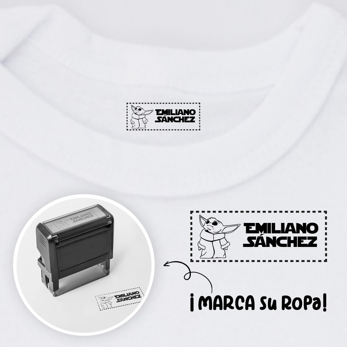 Nuestro sello textil es perfecto y práctico. Solo escribe el nombre que deseas y tendrás la herramienta perfecta en tus manos.