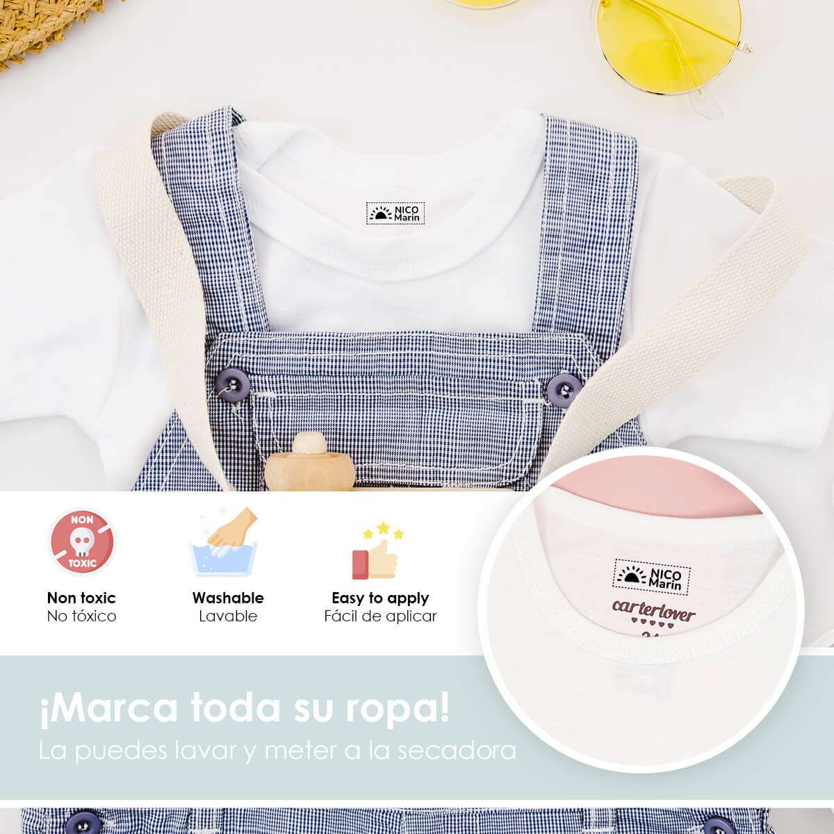 Práctico y duraderoNuestros sellos están diseñados para ser duraderos y resistentes al lavado, garantizando que las etiquetas de la ropa de tus hijos permanezcan legibles y claras durante mucho tiempo.