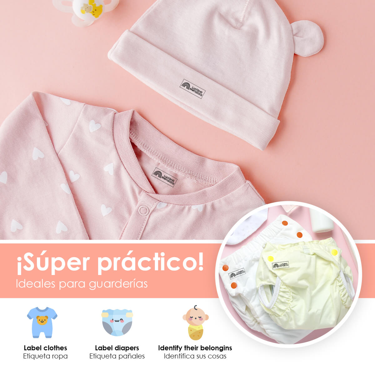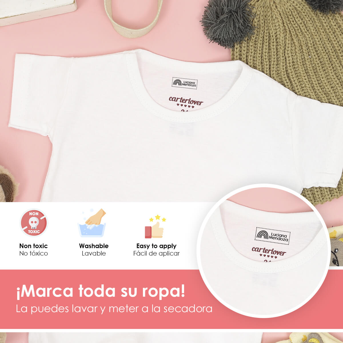 Nuestros sellos están diseñados para ser duraderos y resistentes al lavado, garantizando que las etiquetas de la ropa de tus hijos permanezcan legibles y claras durante mucho tiempo.