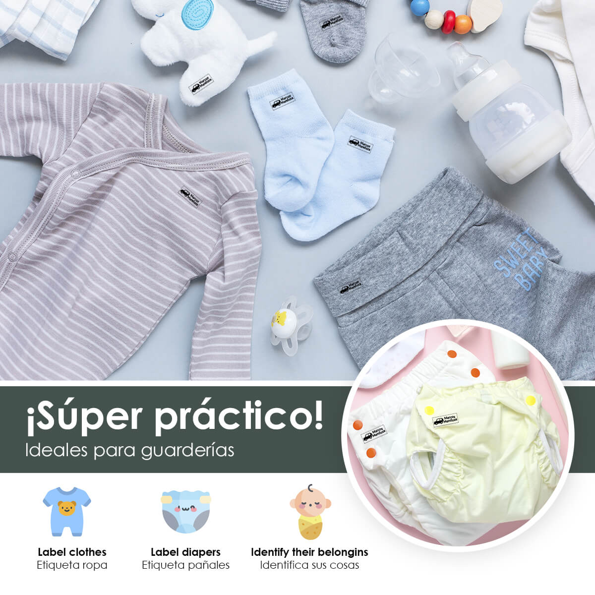 Nuestros sellos están diseñados para ser duraderos y resistentes al lavado, garantizando que las etiquetas de la ropa de tus hijos permanezcan legibles y claras durante mucho tiempo.
