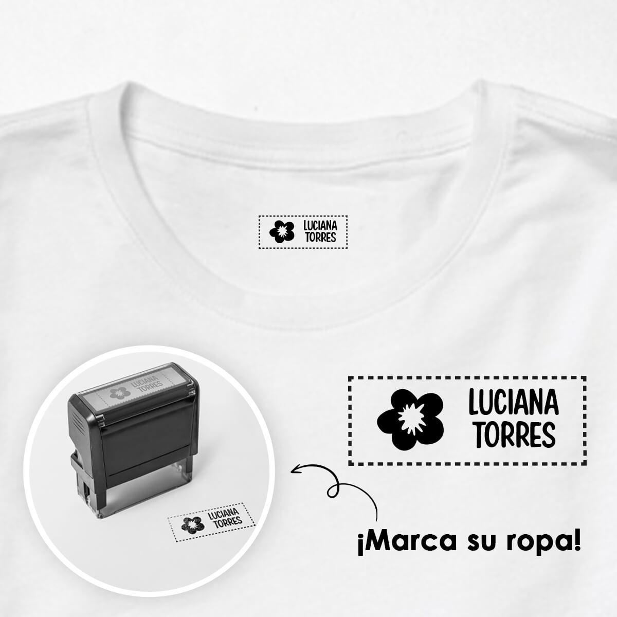 Nuestro sello textil es perfecto y práctico. Solo escribe el nombre que deseas y tendrás la herramienta perfecta en tus manos.