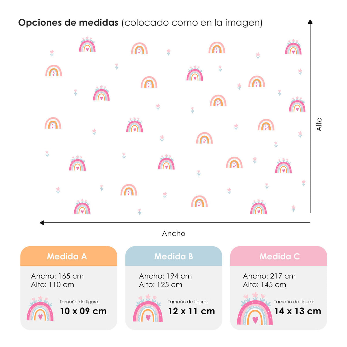 Puedes consultar las medidas disponibles dentro de las imágenes de cada producto y elegir la que mejor se adapte a tu espacio.