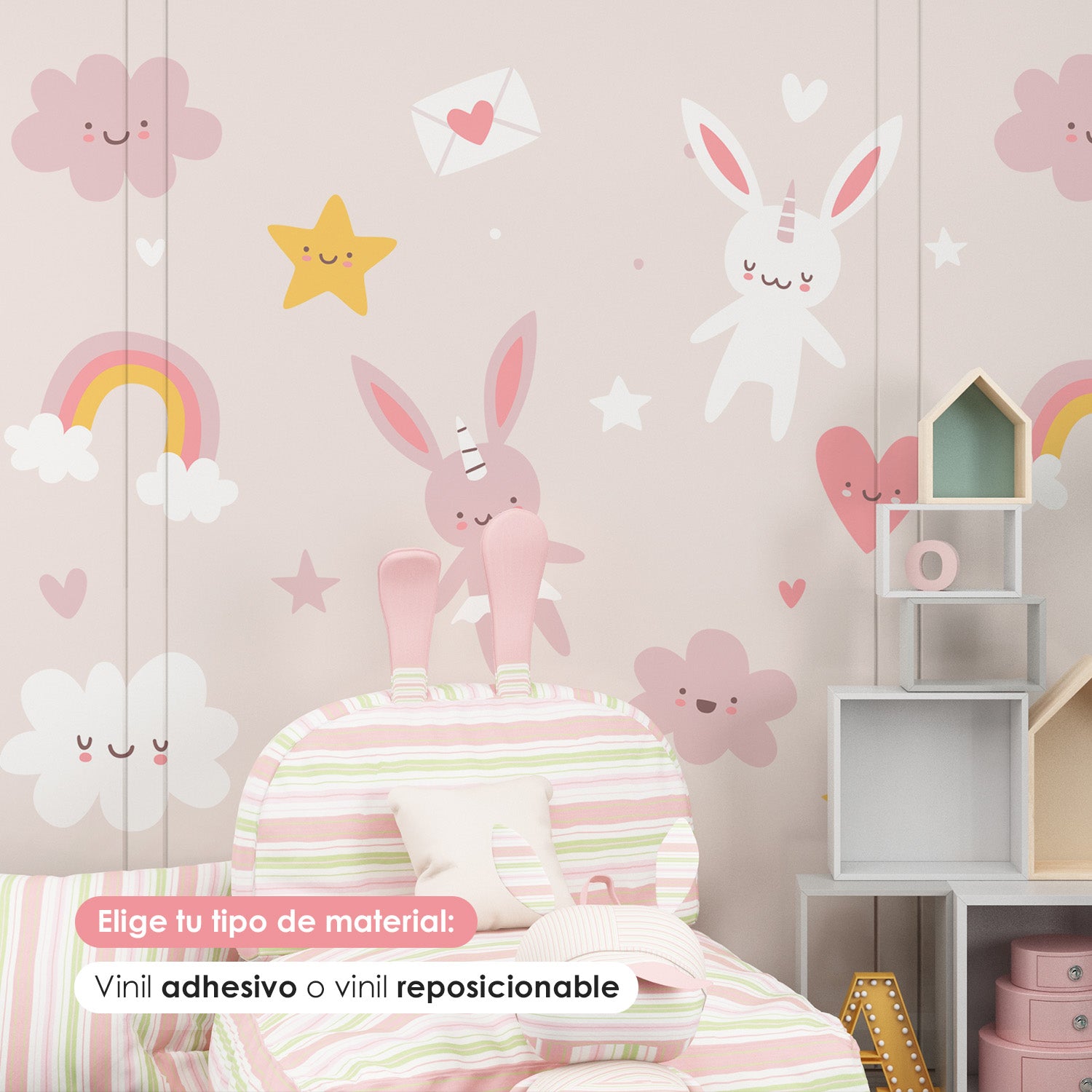 Puedes elegir tu material favorito: vinil adhesivo o vinil reposicionable, nuestros dos materiales estrella para decorar con estilo.
