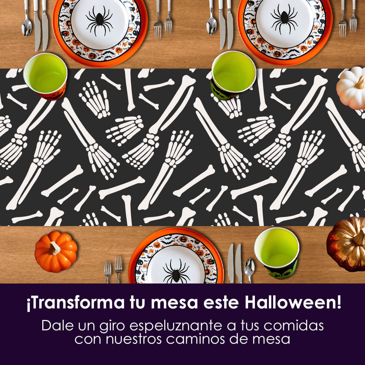 🎃 ¡Haz que tu mesa brille con nuestros caminos de mesa temáticos para Halloween y Día de Muertos! 💀✨