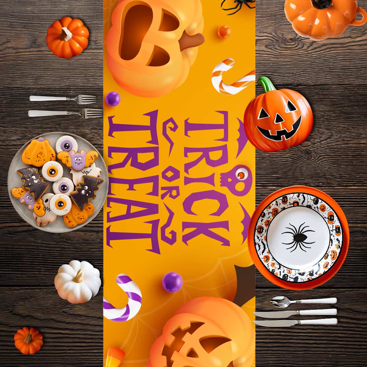 🎃 ¡Haz que tu mesa brille con nuestros caminos de mesa temáticos para Halloween y Día de Muertos! 💀✨