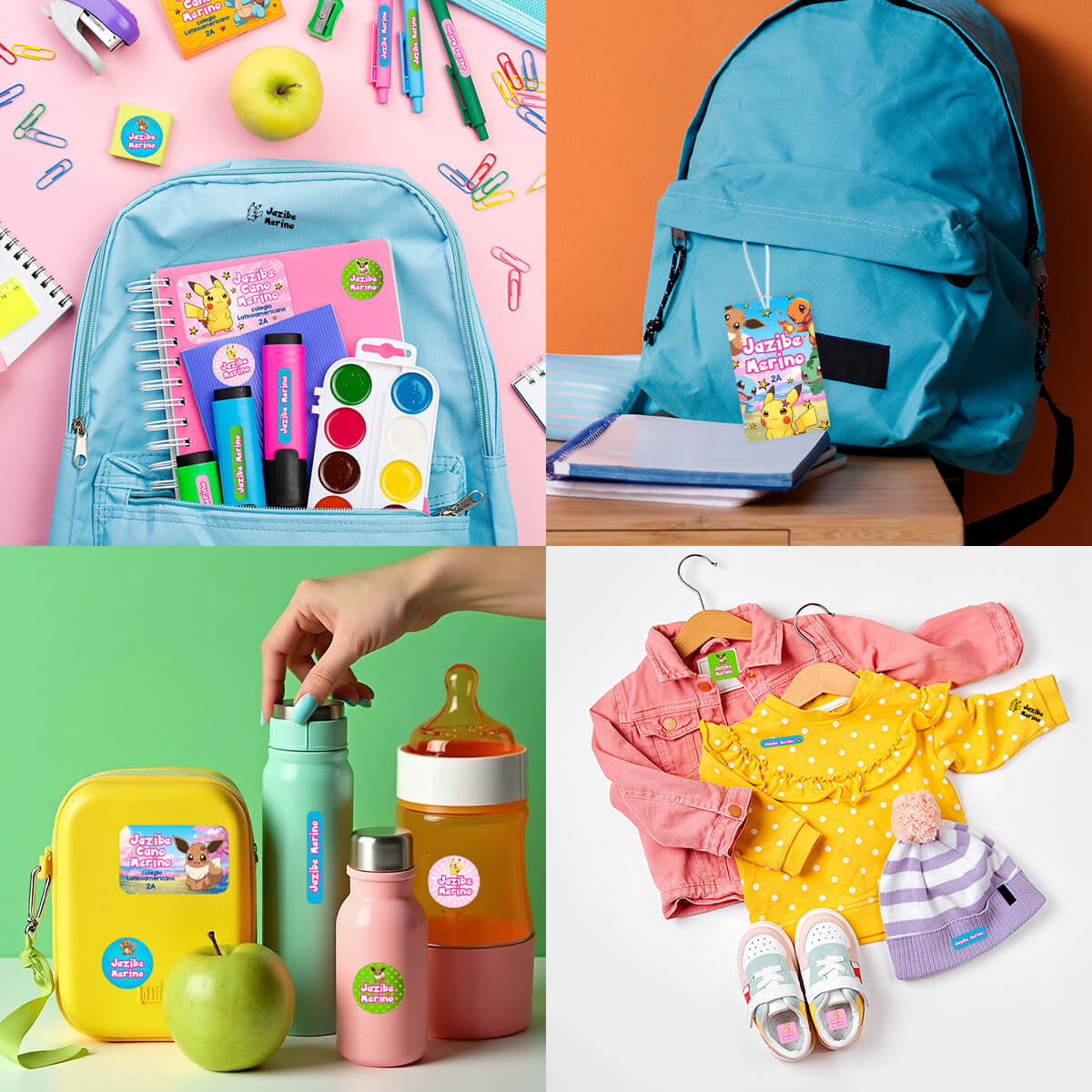 El combo back to school ha sido pensado para etiquetar rápidamente todas las pertenencias que los más chiquitos necesitan.