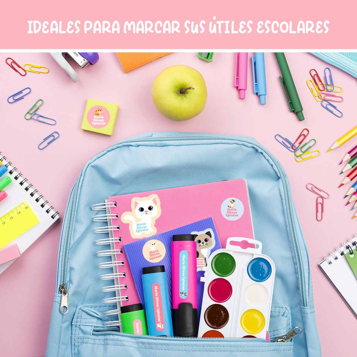 Nuestras etiquetas adhesivas son la solución perfecta para mantener todo ordenado y añadir un toque de diversión a la rutina escolar.