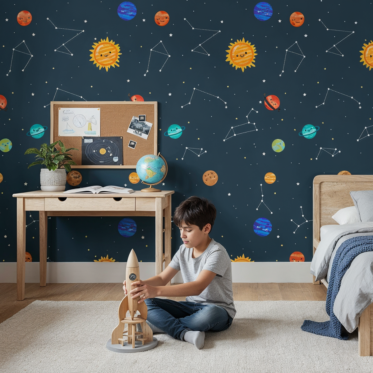 El papel tapiz es una de las formas más fáciles y bonitas de transformar una habitación. En minutos puedes crear un ambiente lleno de color, personalidad y magia, adaptado al estilo y a los gustos de tu pequeño.